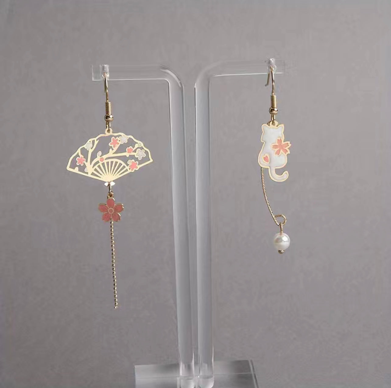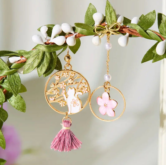 Bow & Sakura Cat Oriental Earrings 🌸🇯🇵