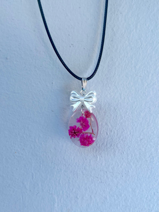 Pink Baby’s Breath Bow Necklace